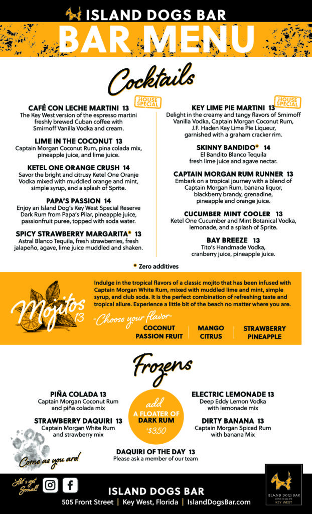 Bar Menu Your Favorite Spot in Key West is Just a Bone’s Throw Away! (305) 509-7136 505 Front StreetKey West, FL 33040 Open Daily!